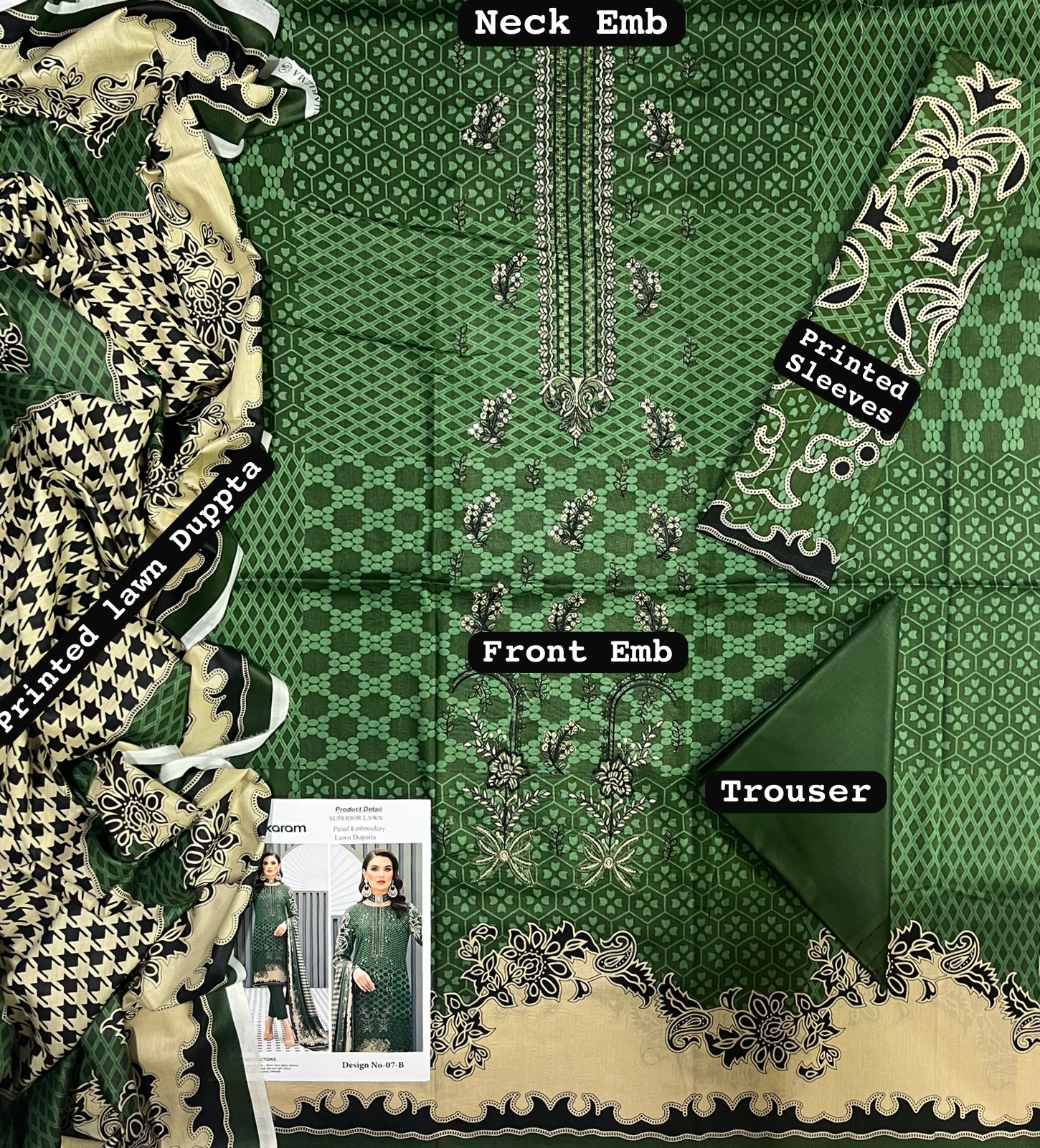 The matching printed lawn trousers complete the ensemble with a cohesive and polished finish, ensuring harmony across all elements of the suit. Paired with a beautifully printed lawn dupatta, the outfit gains an added layer of elegance and charm. The dupatta’s soft texture and detailed patterns enhance movement and visual appeal, making the ensemble suitable for both daytime sophistication and evening wear.