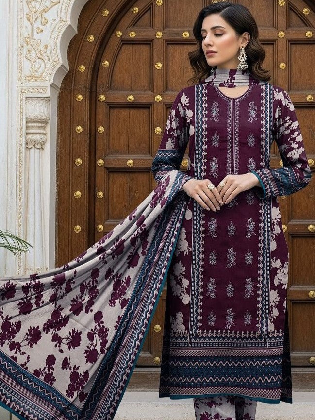 The matching printed lawn trousers complete the ensemble with a cohesive and polished finish, ensuring harmony across all elements of the suit. Paired with a beautifully printed lawn dupatta, the outfit gains an added layer of elegance and charm. The dupatta’s soft texture and detailed patterns enhance movement and visual appeal, making the ensemble suitable for both daytime sophistication and evening wear.