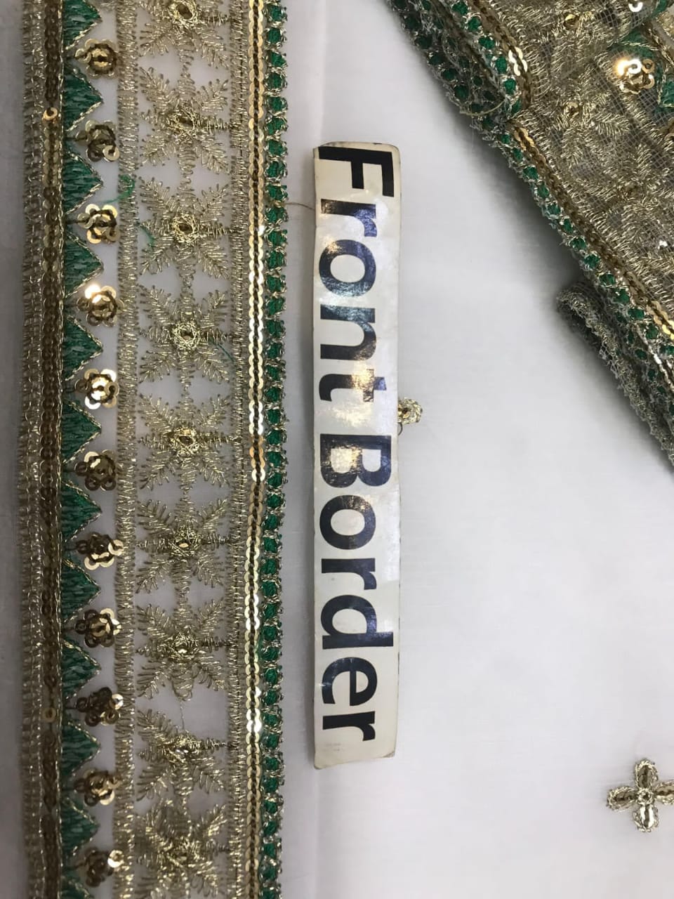 The sheer chiffon dupatta is the crown jewel of this outfit, finished with detailed embroidery and fine edging that enhances the overall luxurious appeal. The lightness of the fabric allows for effortless draping, while its embellished accents make it perfect for capturing attention in every gathering.