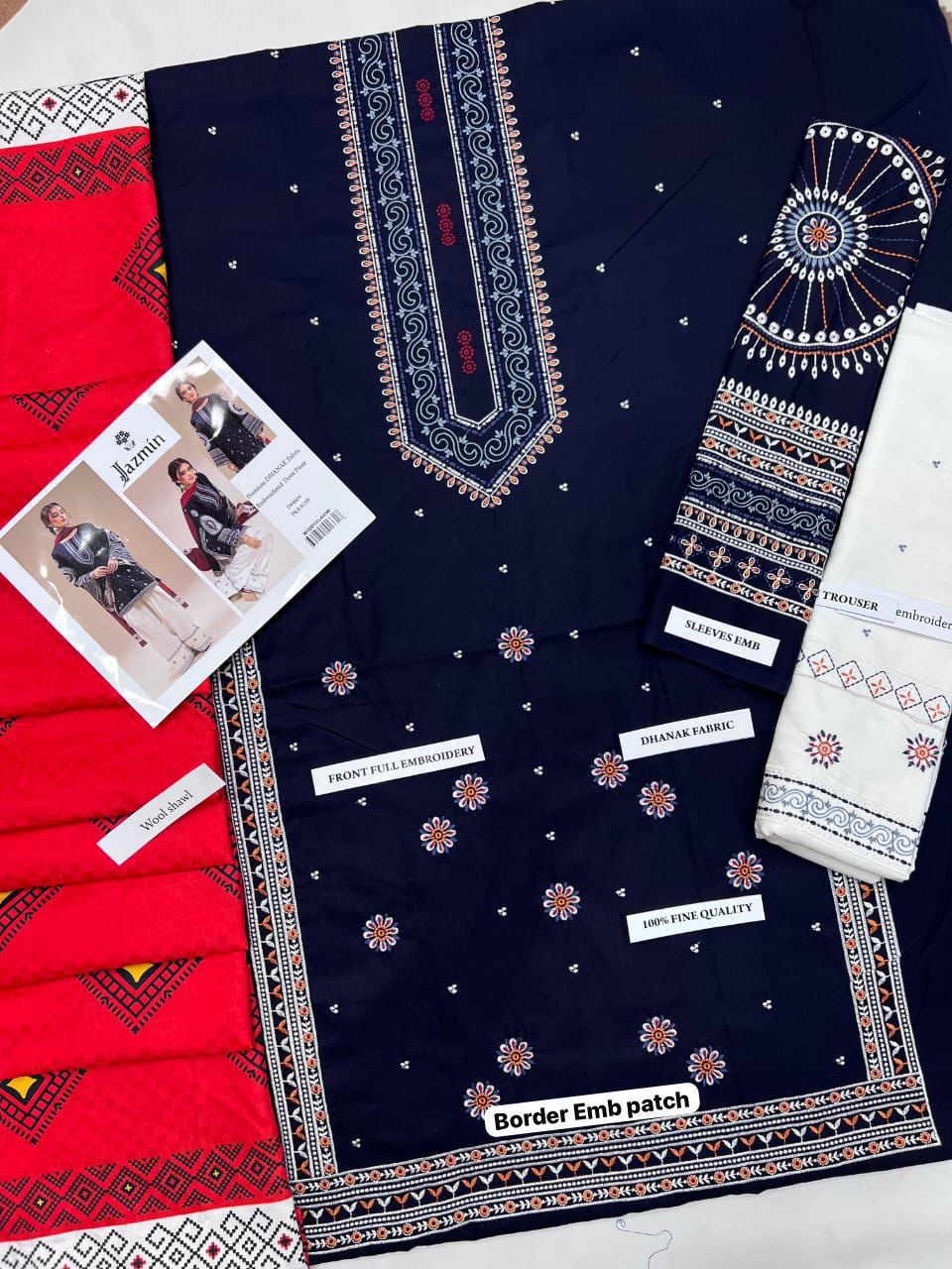 If you're searching for a navy blue embroidered Dhanak suit, a traditional 3-piece winter outfit, or a cultural yet modern embroidered dress, the Jazmin JZ103 is an excellent addition to your winter wardrobe—stylish, warm, and timeless.