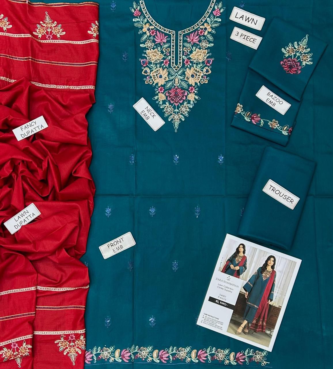 The Jazmin Lawn Embroidered 3 Piece | JZ116 is a perfect blend of classic elegance and contemporary charm, thoughtfully designed for women who appreciate refined summer fashion. Crafted from premium-quality lawn fabric, this outfit offers a soft, breathable, and lightweight feel, making it ideal for warm-weather wear while maintaining a graceful and polished appearance. The deep teal base paired with rich contrasting tones creates a sophisticated color combination that feels timeless and versatile.